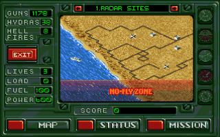 Pretty cool conversion of Electronic Arts' Mega Drive action hit Desert Strike, the first game in their "Strike"-games series.