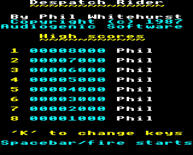 If you haven't played Despatch Rider or want to try this action video game, download it now for free! Published in 1987 by Audiogenic Software Ltd., Despatch Rider was an above-average motorcycle title in its time.