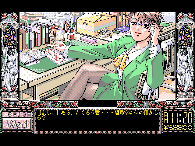 Here is the video game “Dōkyūsei”! Released in 1996 on SEGA Saturn, it's still available and playable with some tinkering. It's an adventure game, set in an adult and anime / manga themes and it was released on FM Towns and PC-98 as well.