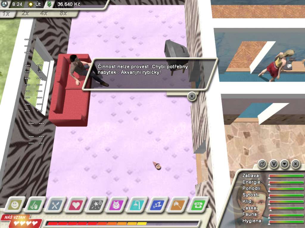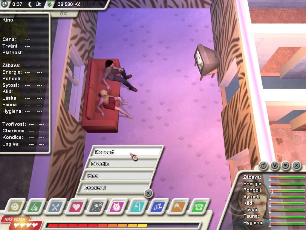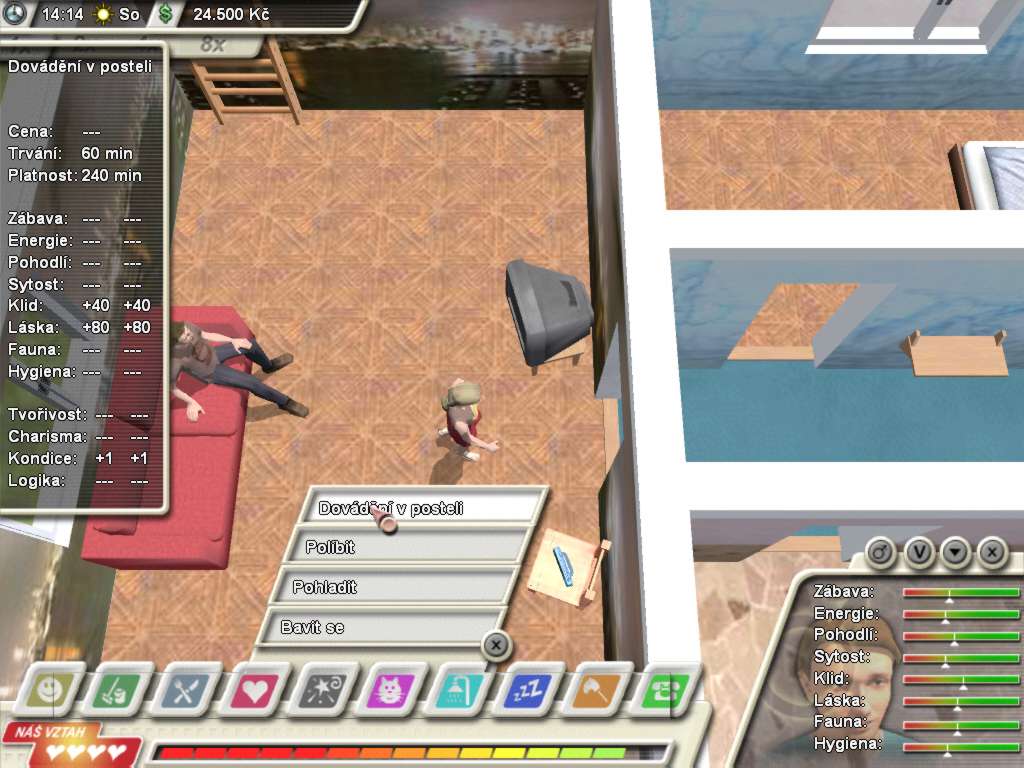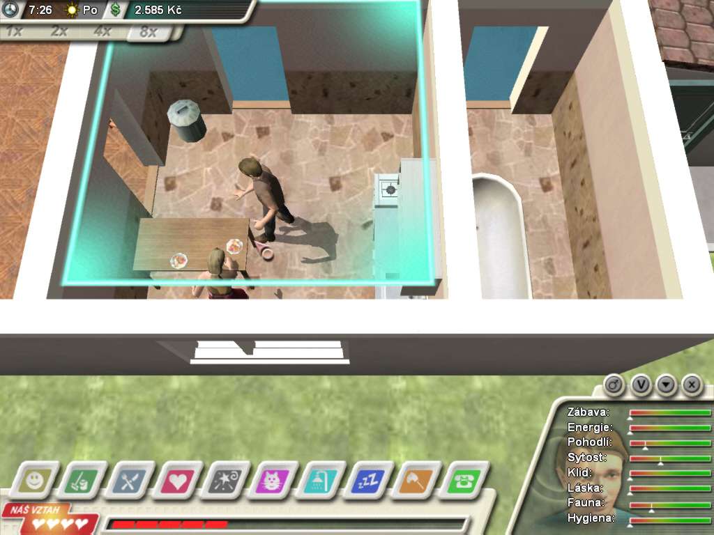 Here is the video game “Domácí násilí: Game over”! Released in 2003 on Windows, it's still available and playable with some tinkering. It's an educational and simulation game, set in a real-time and life / social simulation themes.