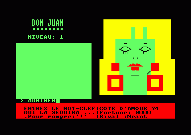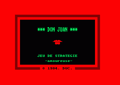 Here is the video game “Don Juan”! Released in 1984 on Amstrad CPC, it's still available and playable with some tinkering. It's a strategy game, set in a turn-based theme.