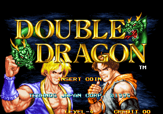 Here is the video game “Double Dragon”! Released in 1995 on Neo Geo, it's still available and playable with some tinkering. It's an action game, set in an anime / manga, fighting, martial arts and movies themes and it was released on Arcade and Neo Geo CD as well.
