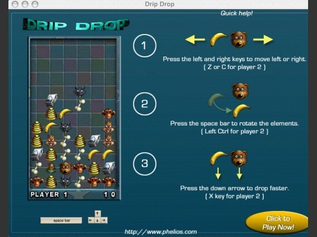 Drip Drop is a video game published in 2007 on Windows by Phelios Inc., Trendverlag. It's a puzzle game, set in a falling block puzzle theme, and was also released on Mac.