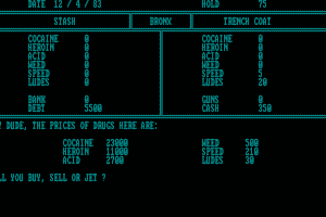 1984, the year Drug Wars: A Game Based on the New York Drug Market was released on DOS. this strategy and simulation game is available for free on this page.
