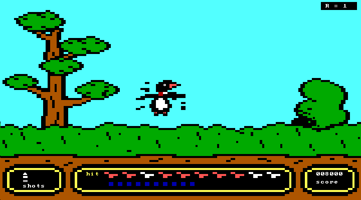 Here is the video game “Duck Hunt”! Released in 1995 on DOS, it's still available and playable with some tinkering. It's an action and sports game, set in an arcade, hunting and shooter themes.
