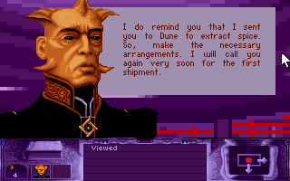 One of the best, and one of the first DOS games I've played. Been years. I had no internet or walkthru back then, but I managed to finish the game on my own. Probably the first RPG-ish game I've played too. Well I hope the enhanced version, Dune CD, could be found here soon. I don't know or can't find any official patch to the floppy version, I'm thinking it had only one release version. And probably DuneCD is of higher version number since it is an enhanced edition afterall. Thanks, Chief.