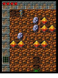 Here is the video game “Dust Digger”! Released in 2004 on J2ME, it's still available and playable with some tinkering. It's an action game, set in an arcade and puzzle elements themes.