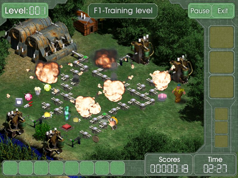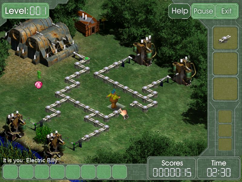 Here is the video game “Electric Billy”! Released in 2004 on Windows, it's still available and playable with some tinkering. It's a puzzle game, set in an arcade and puzzle-solving themes.