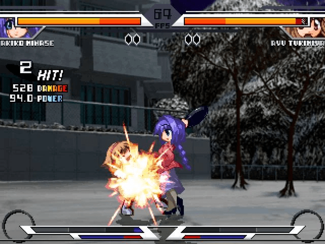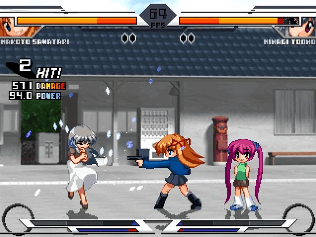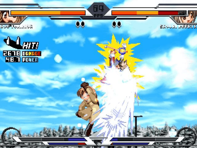 Here is the video game “Eternal Fighter Zero”! Released in 2005 on Windows, it's still available and playable with some tinkering. It's an action game, set in an anime / manga, fighting, versus fighting, fangame and anime / manga based themes.