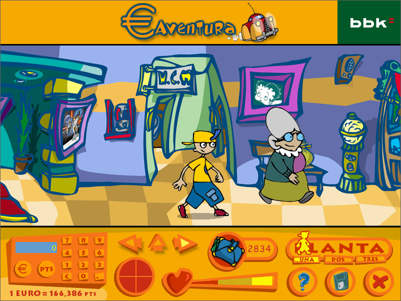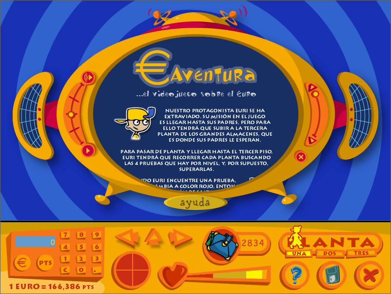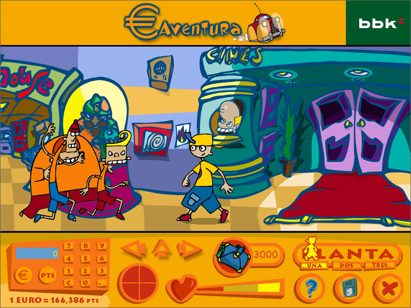 Here is the video game “Euroaventura”! Released in 2001 on Windows, it's still available and playable with some tinkering. It's an adventure game, set in a comedy, puzzle elements and promotional themes.