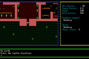 Anyone who has played Ultima IV or similar games will be familiar with Excelsior Phase One's game screen: with the world in one window, a status screen in another, and a command screen in the last. Excelsior Phase Two improves upon the original with better VGA graphics (isometric view reminiscent of Ultima VI, hundreds more NPCs to talk to, and a more intricate plot.