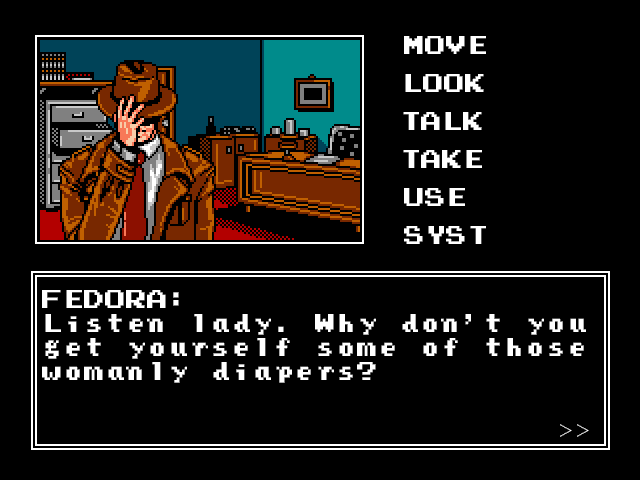 Fedora Spade: The Red Ring (aka Fedora Spade: Episode 2) is a video game published in 2007 on Windows by Radical Poesis Games & Creations. It's an adventure game, set in a detective / mystery and puzzle elements themes.