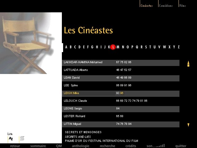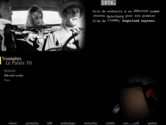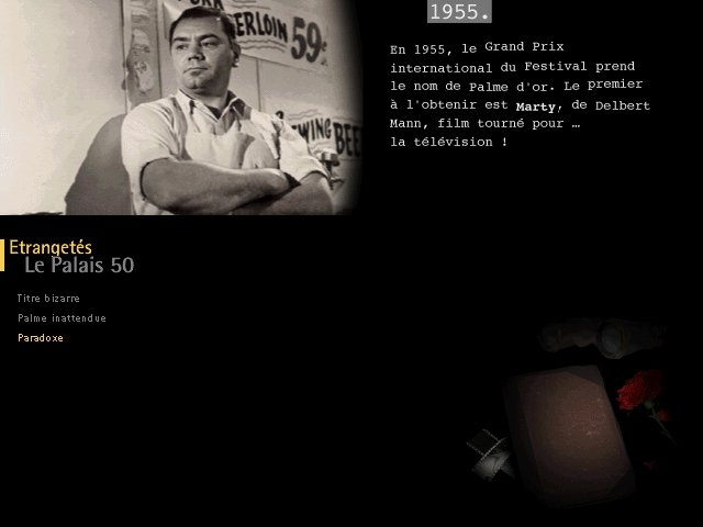 Festival de Cannes - 50 ans de cinéma is a video game published in 1997 on Windows by Télérama. It's an educational game, set in a movies and interactive cd-rom themes, and was also released on Windows 3.x and Mac.