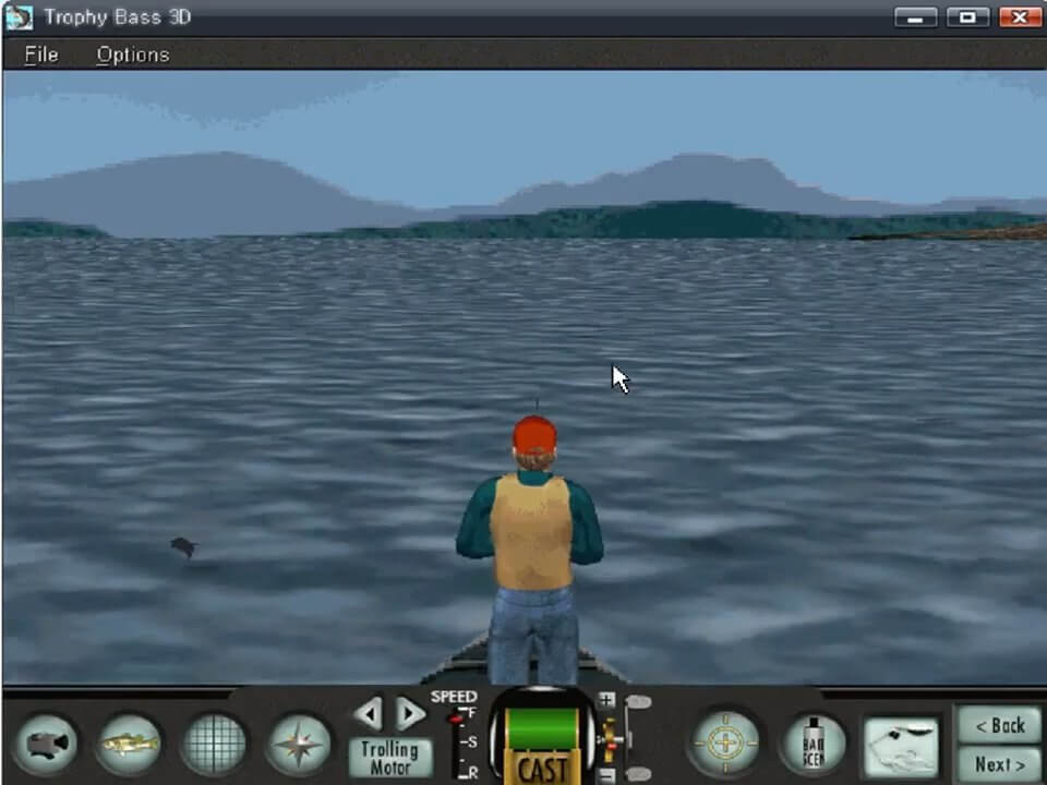 Here is the video game “Field & Stream: Trophy Bass 3D”! Released in 1999 on Windows, it's still available and playable with some tinkering. It's a simulation and sports game, set in a fishing theme.