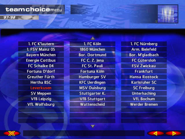 You have the option of playing one of five leagues- England (all four leagues), Germany, France, Scotland and Italy (the top two leagues in each of last four). You can also install the game using any of those languages. You can have as many games as you like- there isn't a limit on the saved game slots. This isn't as helpful as it sounds, as you cannot save a game in progress- FSM saves your game for you. No more exiting if your two star players get injured for two years during a match. I don't like this, because in rare times, this sort of cheating can help you avoid a lot of frustration, but I suppose it is more realistic. As a sidenote, you cannot change to another game while playing- you need to exit and start over.