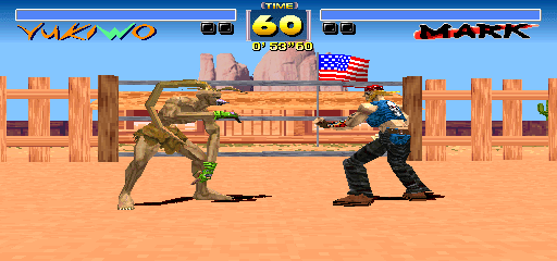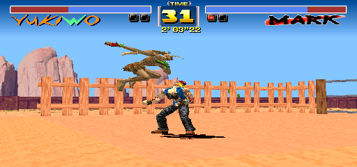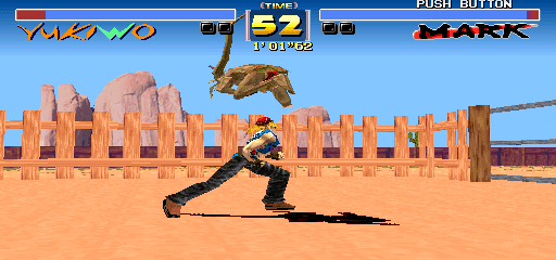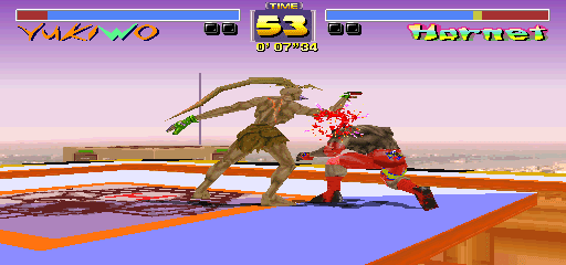 Here is the video game “Fighters' Impact”! Released in 1996 on Arcade, it's still available and playable with some tinkering. It's an action game, set in an arcade and fighting themes.