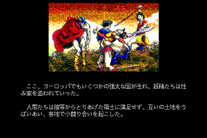 Here is the video game “First Queen II: Sabaku no Joō”! Released in 1990 on PC-98, it's still available and playable with some tinkering. It's a role-playing (rpg) and strategy game, set in a fantasy and real-time themes and it was released on Sharp X68000 as well.