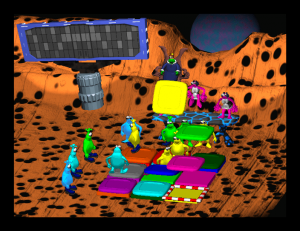 The game has a zany plot to go along with zany gameplay. The citizens of the Cheese Planet have a Great Tile Flipping Festival, which is fairly named since all this festival consists of is flipping tiles in the manner described above. These citizens like to relax from their busy lifestyle and visit Earth. And to quote Fenesh XVII, First Scribe to King Fluffy of the Cheese Planet, "While we're on Earth we visit places like Yellowstone National Park, Mount Rushmore, and Easter Island. However, we are creatures of habit, and we just feel the need to flip things."