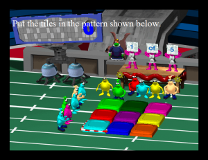 It is from these many different areas that the game draws its various levels. Each level starts off with a map screen representing the various areas you must travel to, and each area contains a different type of puzzle, although these different puzzles all adhere to the basic gameplay described above. The Cheese Planet consists of the basic three by three grid which reappears throughout the game. Each area may contain from as many as 11 to as few as three puzzles, depending on the difficulty level you select at the beginning.