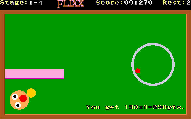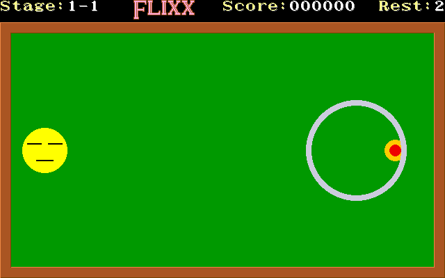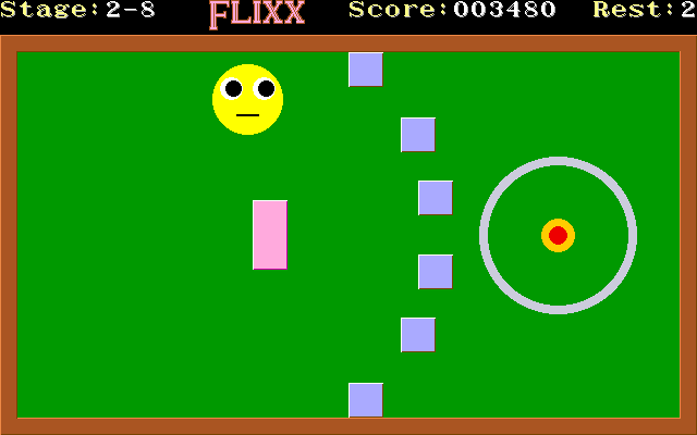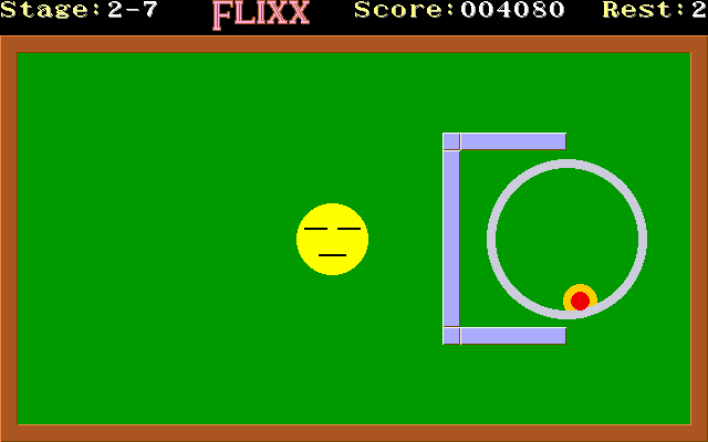 Here is the video game “FLIXX”! Released in 1992 on PC-98, it's still available and playable with some tinkering. It's a puzzle game, set in a paddle / pong theme.