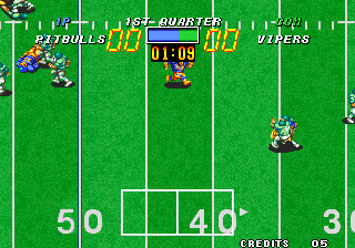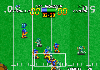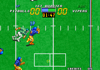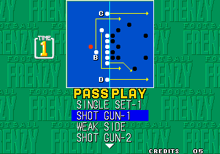 Football Frenzy (aka フットボールフレンジー) is a video game published in 1992 on Neo Geo by SNK Corporation. It's a sports game, set in an arcade and football (american) themes, and was also released on Arcade and Neo Geo CD.