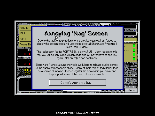 1994, the year Fortress was released on Windows 3.x. Made by Diversions Software, Inc and published by Diversions Software, Inc, this action game is available for free on this page.