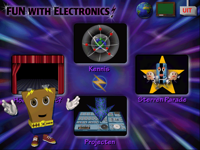 In 1995, Philips Interactive Media, Inc. publishes Fun with Electronics on Windows. Also published on Windows 3.x and Mac, this educational game is abandonware and is set in a math / logic, science and licensed title themes.