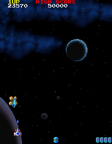 great version of galaga. you can start with two ships at the cost of one life. but dont take the abduction or you are out of lives and die.. my girl took over my pc and played this for hours.... :')