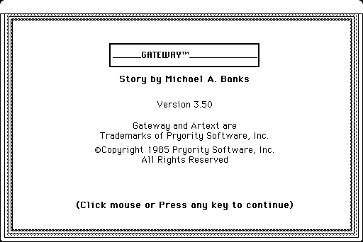 If you haven't played Gateway or want to try this adventure video game, download it now for free! Published in 1986 by Pryority Software, Gateway was an above-average puzzle elements title in its time.