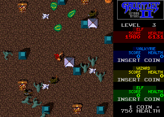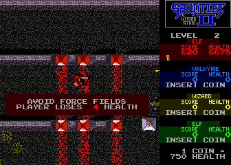 Although it is true that Gauntlet II has almost identical layout as the original, some new, interesting features have been added to make gameplay a bit more complex. There are health-draining force fields and new monsters such as sorcerers, blobs of acid, and a black monster that homes in on you and saps your health. The levels also start changing randomly after level 5.