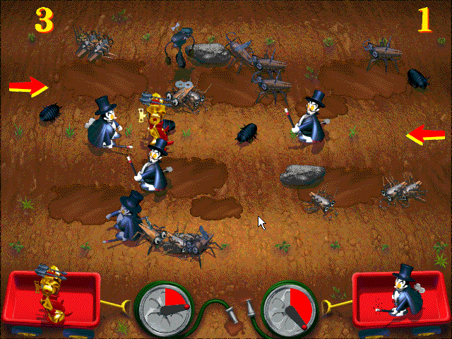 The premise is simple: try to get 21 wind-up toys over to your opponent's side before he can do the same to you. The difficulty lies in the unique abilities of toys, e.g. Clucketta the chicken can lay tiny wind-up chicks, and Handy can wind up toys that wind down. A fun and charming game that combine arcade reflexes and puzzle elements into a very captivating experience. The game is essentially a great variant of paper-rock-scissors game, and can be considered a modern update of EA's classic Archon, but with a more cartoony feel. Thumbs up!