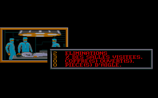 Loriciel, true to their reputation as developer of innovative games (similar to Exxos), even includes a full-featured Reversi board game within the game, which has a decent AI and even "hint" feature! Another neat feature is the on-line dossiers of major characters and an e-mailbox, which relays new instructions for your mission as you make progress. Unfortunately, weapons in Golden Eagle are quite ordinary, and levels are too repetitive to hold anyone's interest for long.