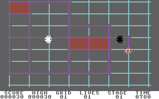 Here is the video game “Gridder”! Released in 1983 on Commodore 64, it's still available and playable with some tinkering. It's an action game.