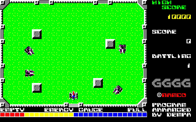 In 1984, Namco Limited publishes Grobda on Arcade. Also published on PC-88, this action game is abandonware and is set in a shooter and tank themes.