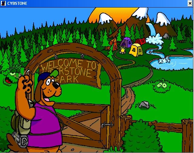 Travel with Gus to CyberStone Park, a colorful wilderness chock full of fun places to explore. In CyberStone Park children will meet Ranger Jackie and Ranger Rick. They will offer information and tips on how to safely enjoy time in the wilderness and award young users with CyberRanger Badges as they learn tips about the great outdoors. Cyberstone Park features 13 environments.