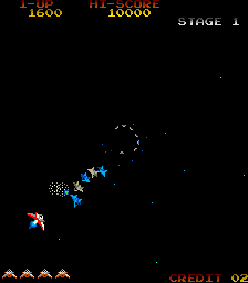 Gyruss is a video game published in 1984 on Atari 2600 by Parker Brothers. It's an action game, set in an arcade, sci-fi / futuristic and shooter themes, and was also released on Arcade, Atari 8-bit, ColecoVision and Commodore 64.