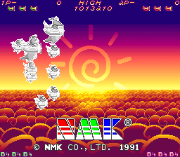 1991, the year Hacha Mecha Fighter was released on Arcade. Made by NMK Co. Ltd. and published by NMK Co. Ltd., this action game is available for free on this page.