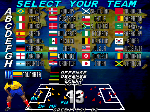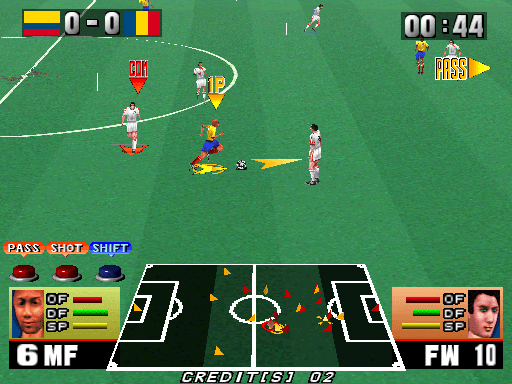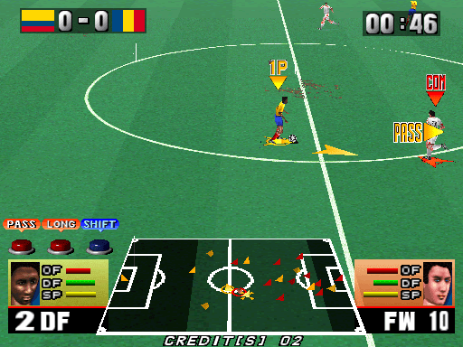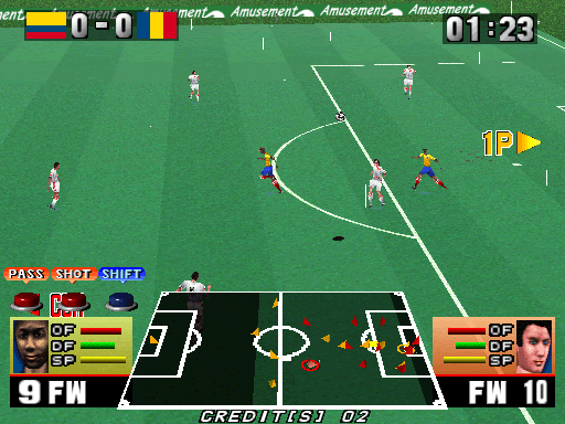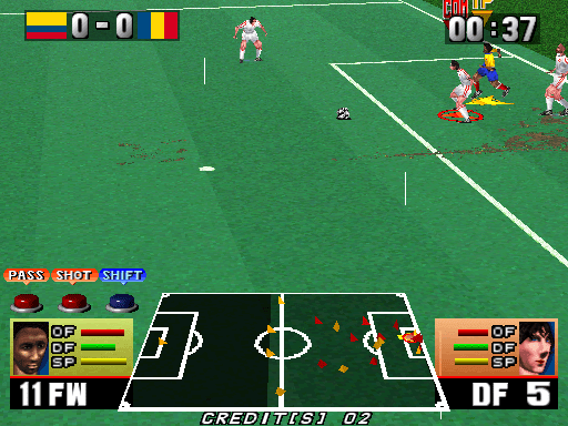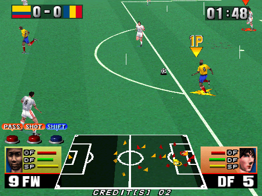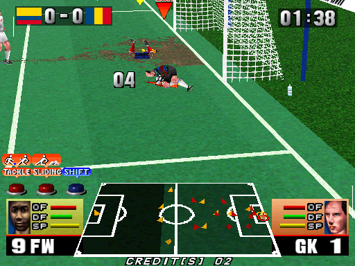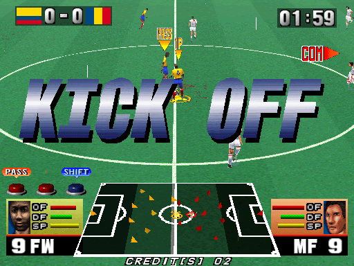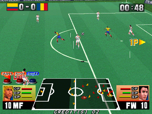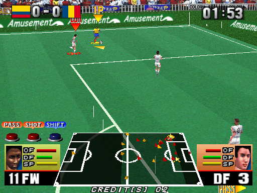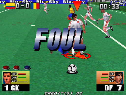 Here is the video game “Heat of Eleven '98”! Released in 1998 on Arcade, it's still available and playable with some tinkering. It's a sports game, set in a soccer / football (european) theme.