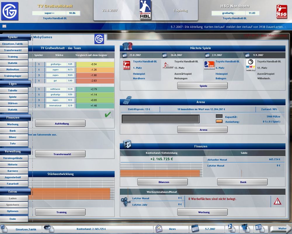 In 2007, TGC - The Games Company GmbH publishes Heimspiel: Handballmanager 2008 on Windows. This sports game is now abandonware and is set in a managerial and licensed title themes.