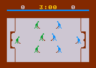 Here is the video game “Hockey”! Released in 1981 on Atari 8-bit, it's still available and playable with some tinkering. It's a sports game, set in a hockey and real-time themes.