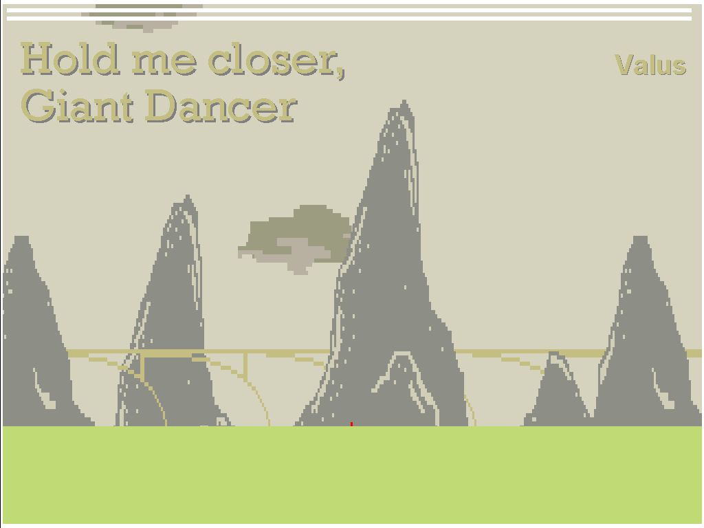 Here is the video game “Hold me closer, Giant Dancer”! Released in 2008 on Windows, it's still available and playable with some tinkering. It's an action game, set in a platform theme.