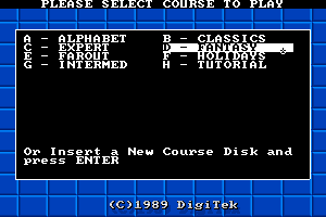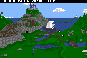 In 1989, DigiTek Software publishes Hole-In-One Miniature Golf Deluxe! on DOS. This sports game is now abandonware and is set in a golf and mini golf themes.