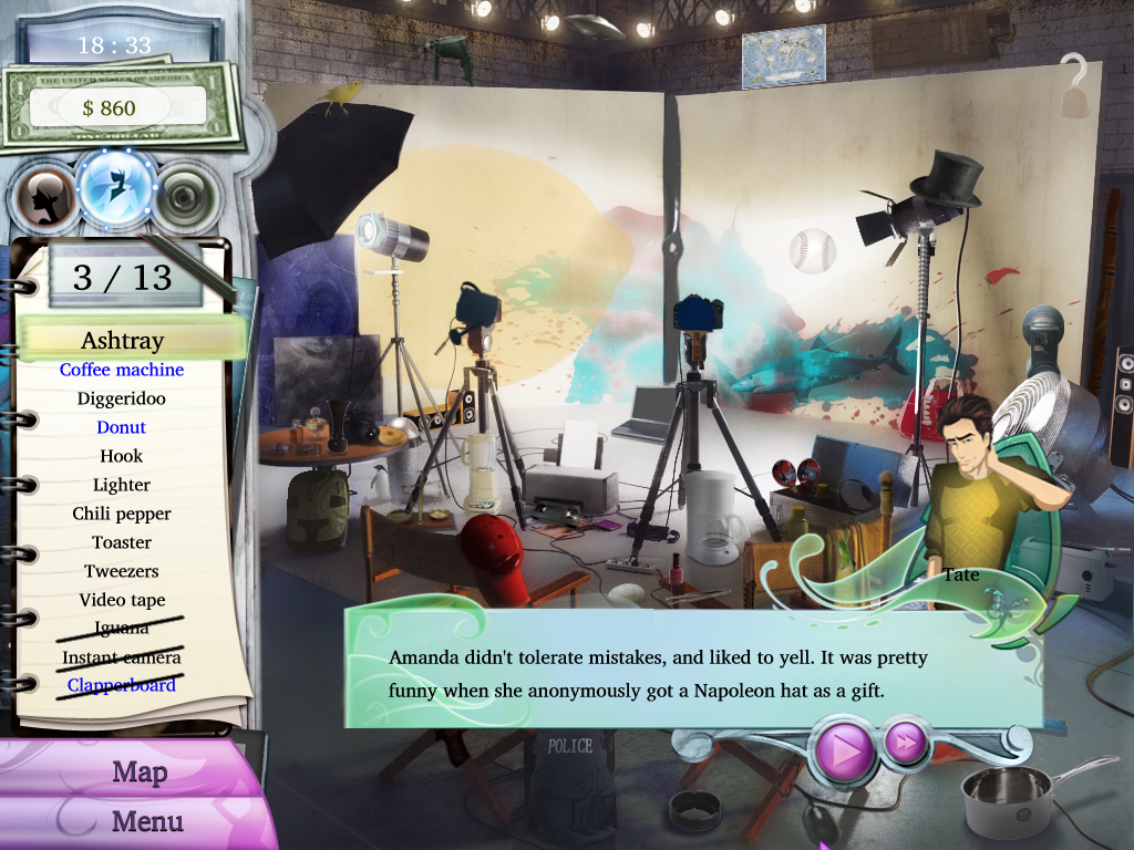 Here is the video game “Hostile Makeover”! Released in 2009 on Windows, it's still available and playable with some tinkering. It's an adventure and puzzle game, set in a detective / mystery, licensed title and hidden object themes.