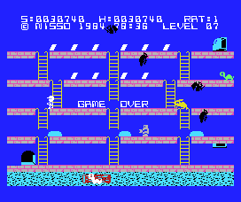 1984, the year Hustle! Chumy was released on MSX, as well as SG-1000. Made by Compile and published by NISSO Corporation, this action game is available for free on this page.