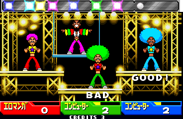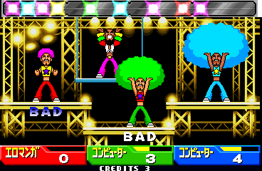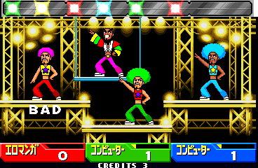 In 1999, Konami Co., Ltd. publishes Hyper Bishi Bashi Champ on Arcade. This action game is now abandonware and is set in an anime / manga, arcade, comedy and mini-games themes.