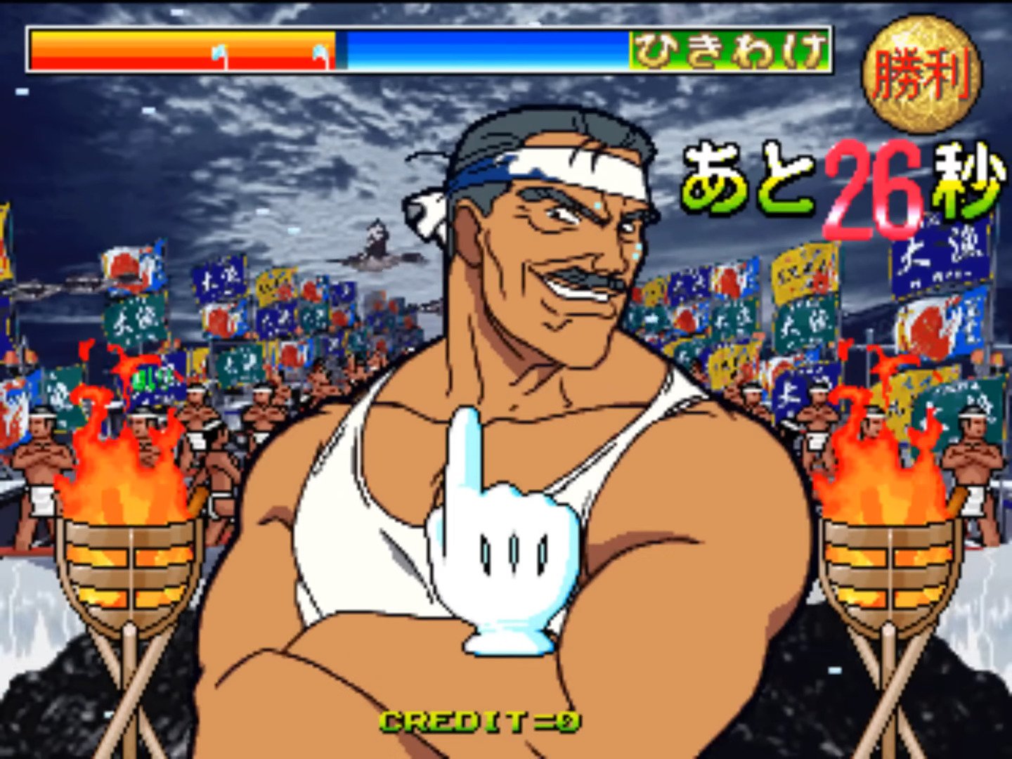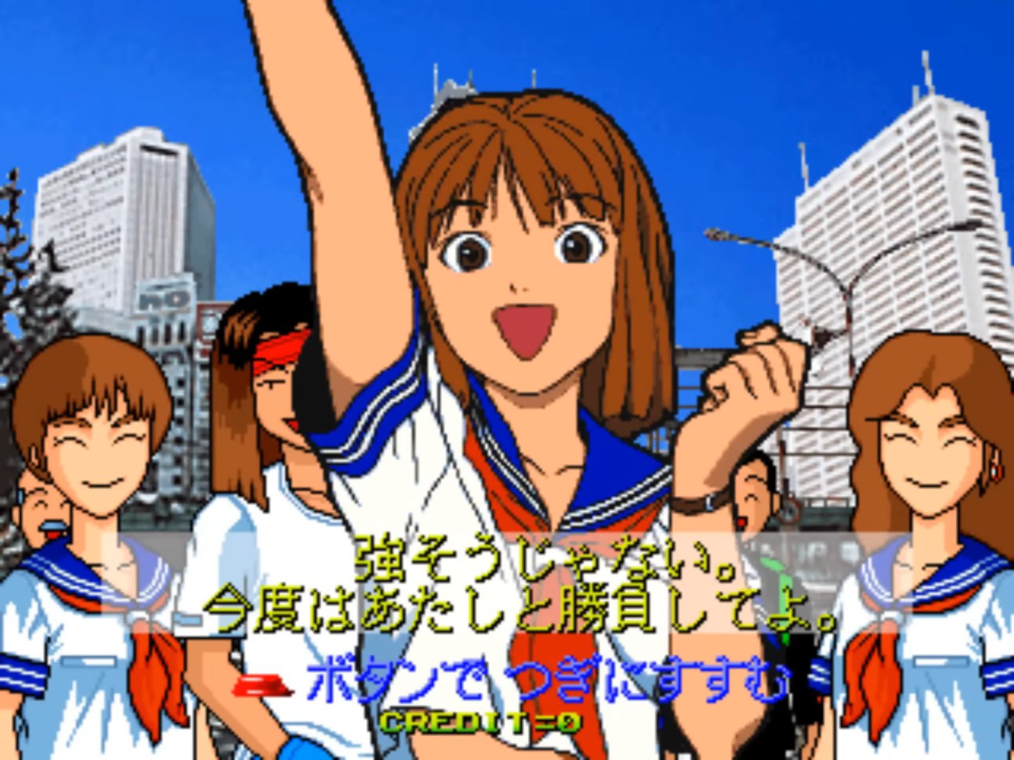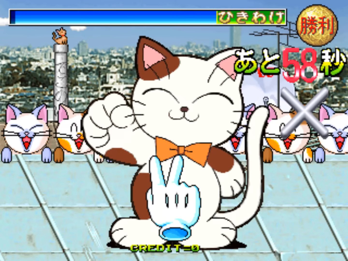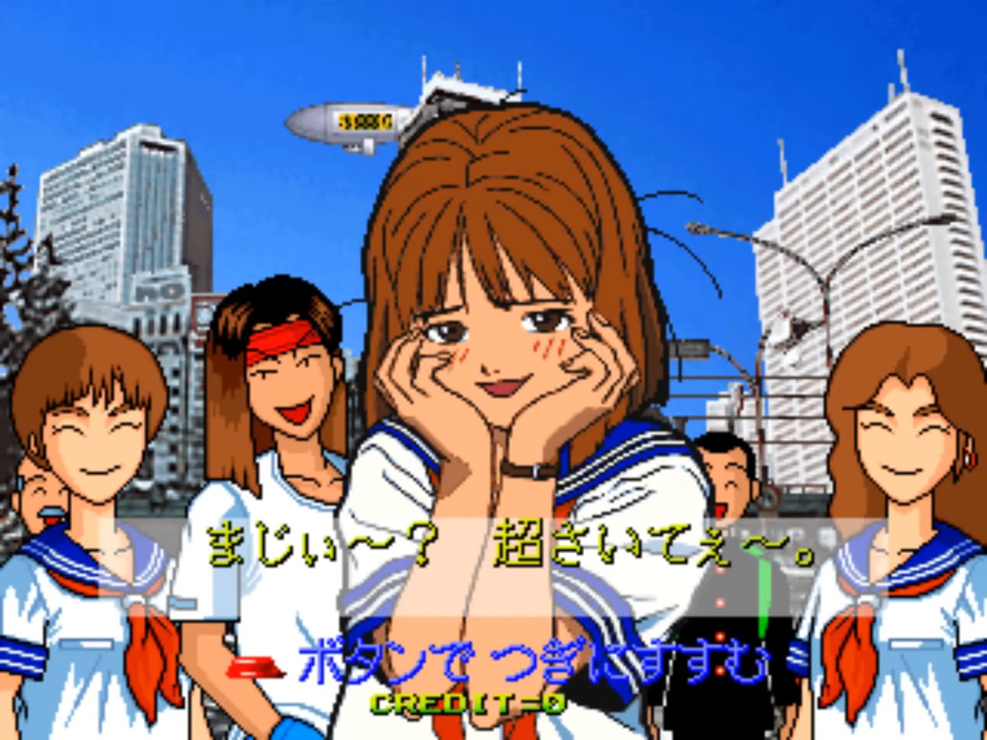 Janken Game Acchi Muite Hoi! (aka ジャンケンゲームあっちむいてホイ!) is a video game published in 1996 on Arcade by Data East Corporation. It's an action game, set in an anime / manga theme.