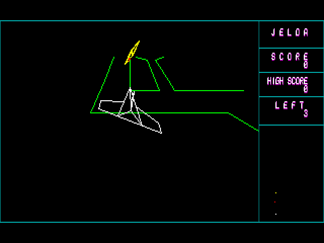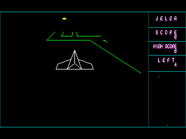 Jelda (aka ジェルダ) is a video game published in 1984 on Hitachi S1 by Carry Lab. It's an action game, set in a sci-fi / futuristic, shooter and space flight themes.
