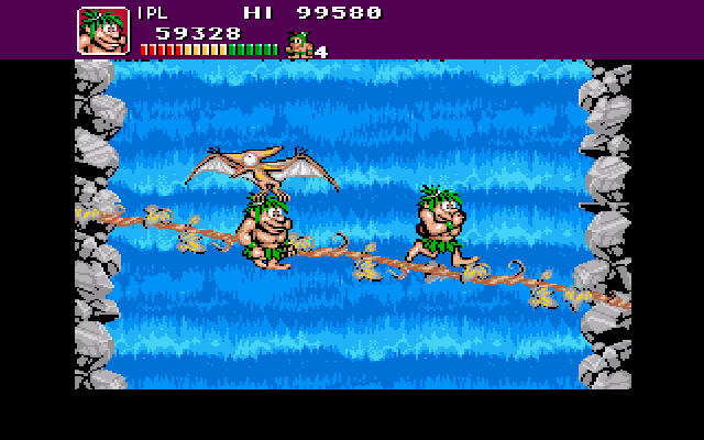 After their “cave-babes” were kidnapped by rival gangs of Neanderthals, the cavemen ninja decide to strike back. Armed with a variety of Stone Age projectile weapons, the two will fight their way,with your help, through six levels of jungle adventures, facing threats from nasty cavemen, angry bees, giant plants and more dinosaurs than you can shake a petrified stick at.