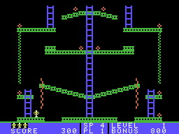 Here is the video game “Jumpman Junior”! Released in 1983 on Commodore 64, it's still available and playable with some tinkering. It's an action game, set in a platform theme and it was released on Atari 8-bit and ColecoVision as well.