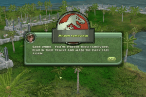 Here is the video game “Jurassic Park: Operation Genesis”! Released in 2003 on Windows, it's still available and playable with some tinkering. It's an educational, strategy and simulation game, set in an ecology / nature, amusement park, dinosaurs and movies themes.